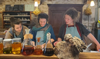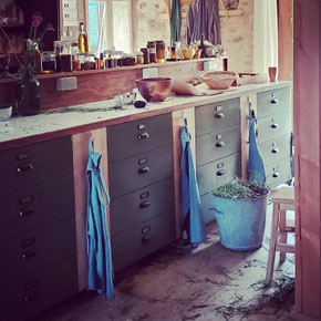 In het sfeervolle kruidenatelier maken we met de wilde kruidenoogst kleine gerechten en krachtige kruiden-bereidingen die ècht werken. Kruidenzalf, pommade, tinctuur met en zonder alcohol, elixer, azijnextracties (oxymel, vuurazijn), kruidenbitter, siroop, honingextractie, massageolie, maceraat, wikkels en tisane. Dit zijn krachtige (basis)bereidingen waarmee je thuis voortaan aan de slag kunt door ze bijvoorbeeld met een ander kruid te maken. De meeste grondstoffen die we hiervoor gebruiken zijn biologisch en natuurlijk. In het kruiden-atelier zijn alle materialen aanwezig om deze bereidingen te maken. Zo ook de verpakkingen als potjes en flesjes. Het enige wat je zelf mee mag nemen zijn jampotten en weckpotten, alcohol (om tinctuur mee te maken) en rauwe honing. In de opleiding besteden we ook aandacht aan de juiste manier van oogsten, drogen en bewaren van kruiden.