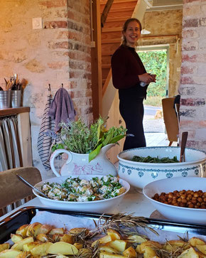 we ook langer op pad om een bepaalde biotoop te bezoeken en daar kruiden te leren kennen en te oogsten. Je kunt bij ons (tegen een vergoeding) blijven logeren als je dat fijn vindt. Er zijn in de tuin een paar fijne plekken waar je je tentje kan neerzetten. Er is een warme buitendouche en op de slaapzolder/drogerij boven het kruidenatelier staan fris gedekte bedden. Logeren bij Lala Le Prenet