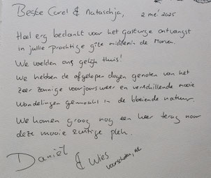 Une semaine très paisible au milieu de la nature incroyablement mise en valeur. Gîte d’une propreté irréprochable, bien équipé et à la décoration recherchée. Nous quittons ce lieu enchanté à regret. Merci Nataschja et Carel. (5 étoiles. Airbnb )