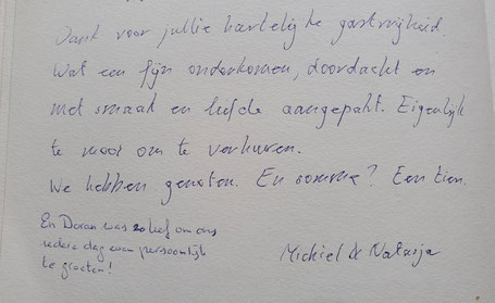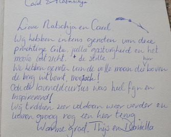 Nataschja en Carel hebben een plek gecreëerd die een kalmerend effect heeft op de ziel en waar je van binnen heel vredig kunt worden. Ze hebben alles liefdevol gerestaureerd en uitgerust met veel kleine mooie dingen om te ontdekken. Op verschillende plaatsen zijn er stoelen, kleine tafels, een parasol, alles heerlijk om te ontspannen. Het is daar ongelooflijk stil en je kunt 's nachts de sterren zien. Zelfs de Melkweg. De twee zijn ongelooflijk vriendelijk en wat bijzonder goed is: het beddengoed en alles is gemaakt van katoen en gewassen met een wasmiddel dat neutraal is! Geweldig. Bedankt voor deze plek! (Vertaald uit het Duits. 5 étoiles. Airbnb )