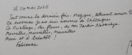 J'ai passé un trop court séjour dans le gîte de Nataschja, coin de paradis entre ciel et terre, une bulle de sérénité entre parfums de fleurs et de plantes, chaleur du bois, douceur des couleurs et beauté du paysage. Une merveille ! (5 étoiles. Airbnb )